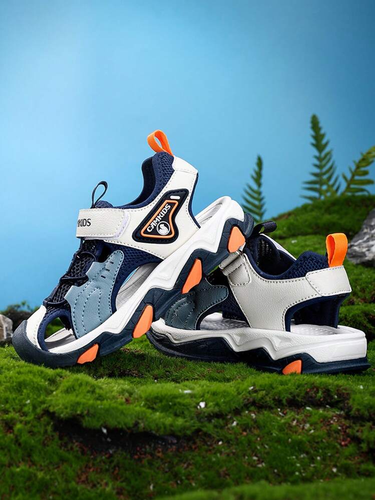 صنادل للأطفال، صنادل صيفية جديدة للأولاد والبنات، بتصميم المدرسة والحرم الجامعي، قاعدة مانعة للانزلاق، قابلة للتنفس، خفيفة الوزن، تصميم إبزيم وحلقة، مناسبة للخارج والملعب والحمام، قدم محمية