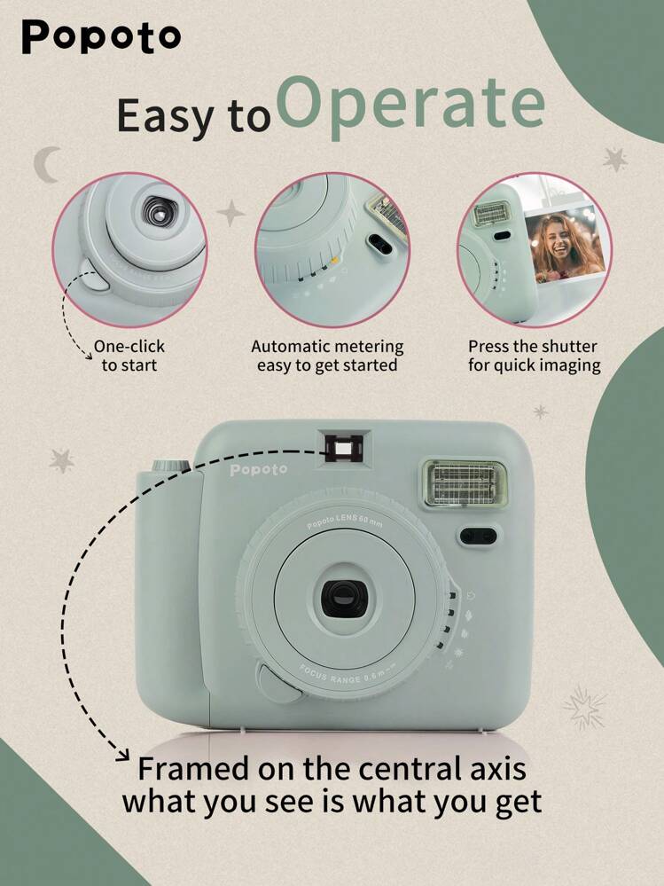 popoto كاميرا فورية بوبوتو جديدة مناسبة لأفلام 11/12 مصغرة ، هدية مثالية للأعياد والحفلات والزفاف (باستثناء البطارية والفيلم)