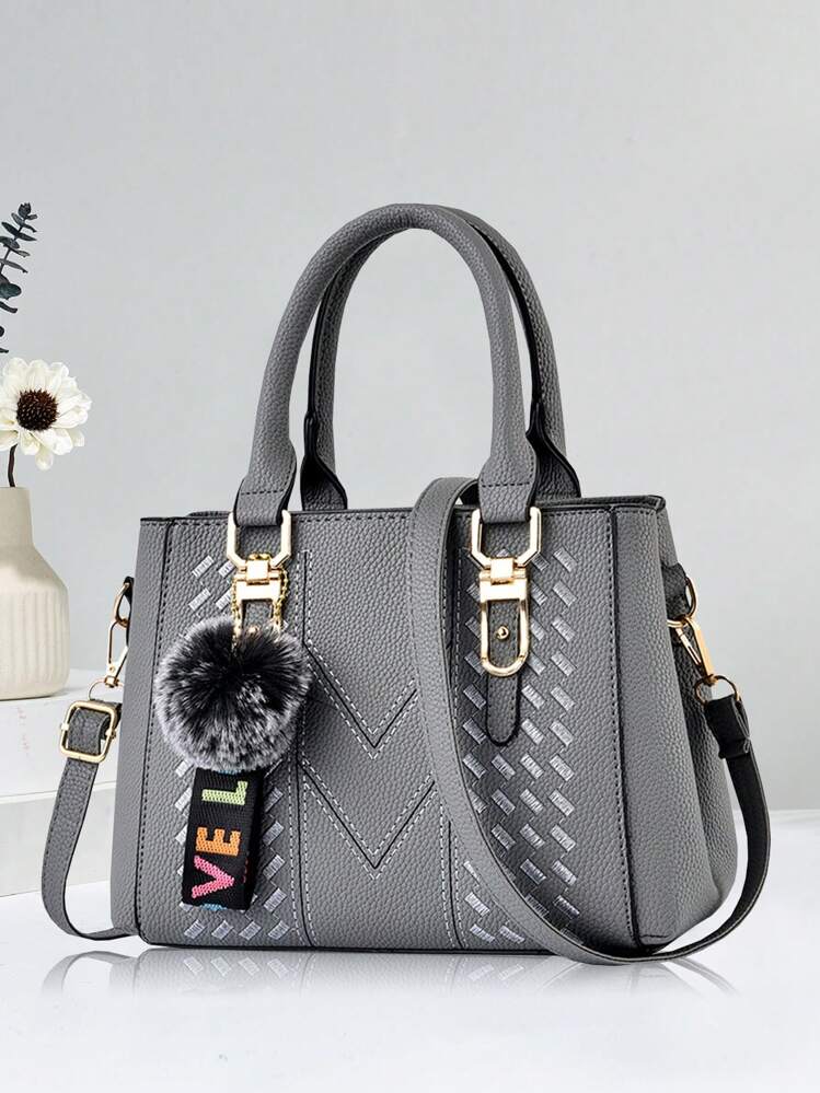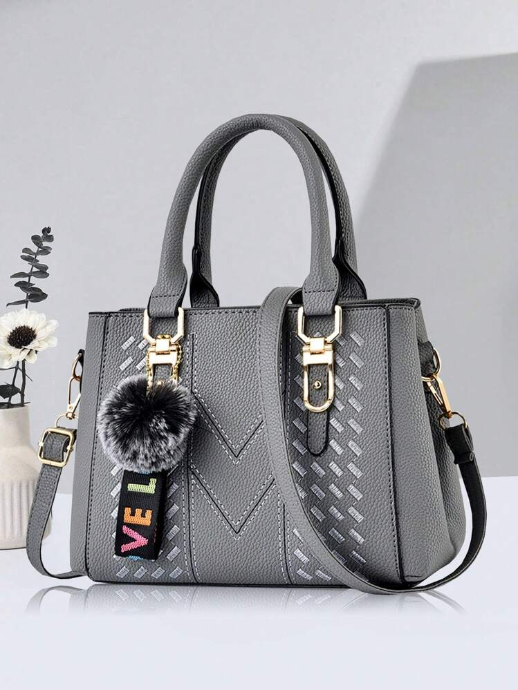 حقيبة كتفية جديدة بتعليقة كرة فروية، أسلوب عصري، هدية عيد الأم للأم، ضروري للأم ، مثالي للمكتب والكلية والعمل والأعمال والتنقل والخارج والسفر والنزهات