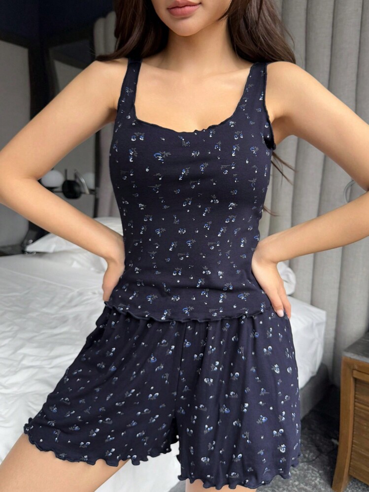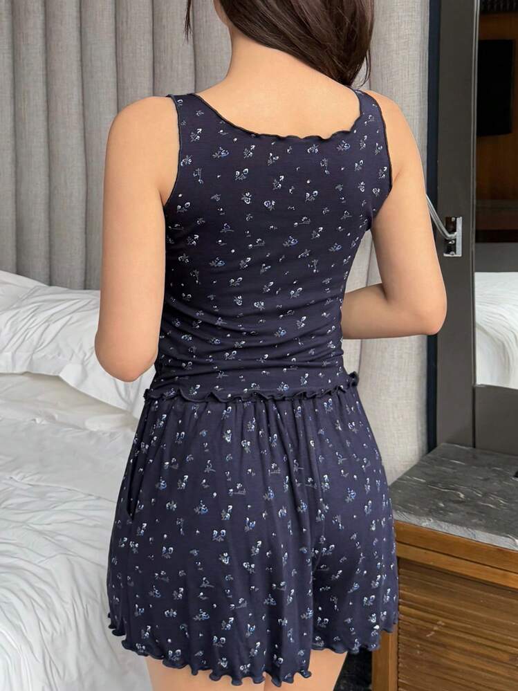 DAZY 2 قطعة من بيجامة نسائية مريحة وملبوسة بطبعات زهور صغيرة