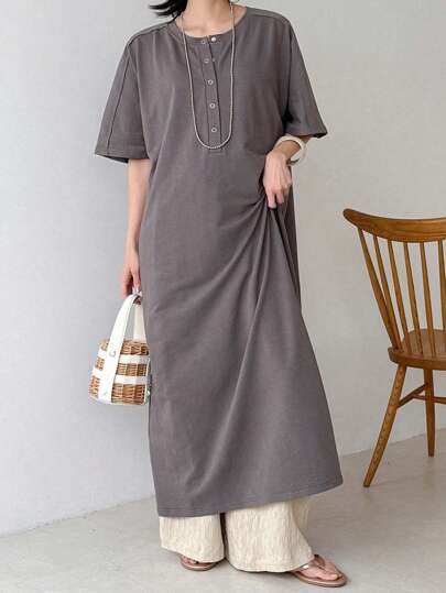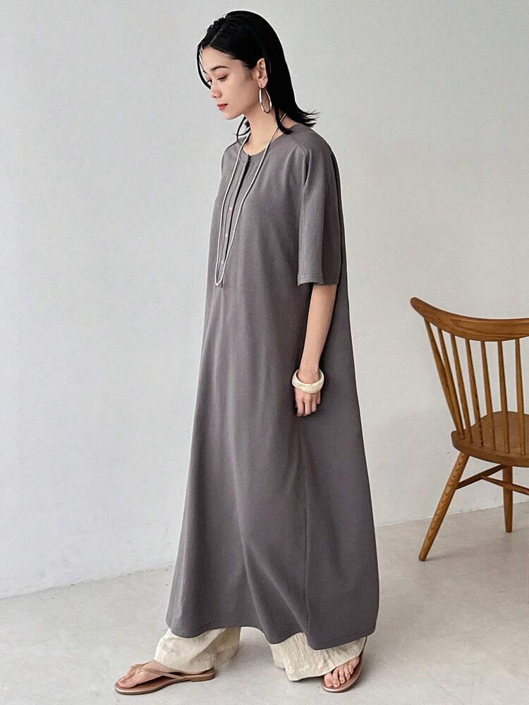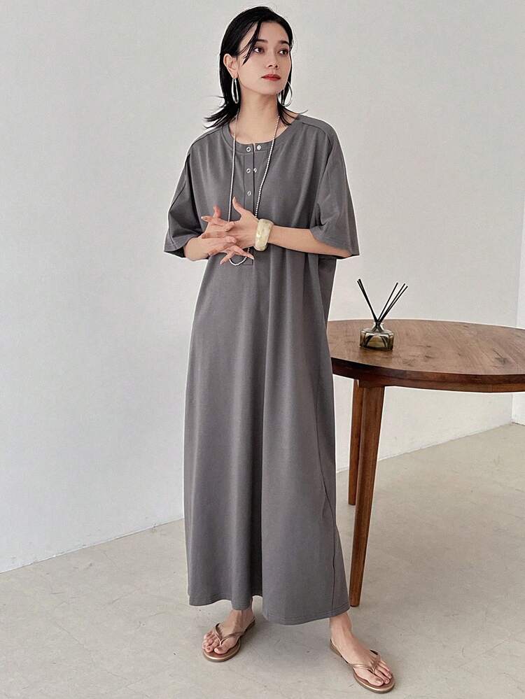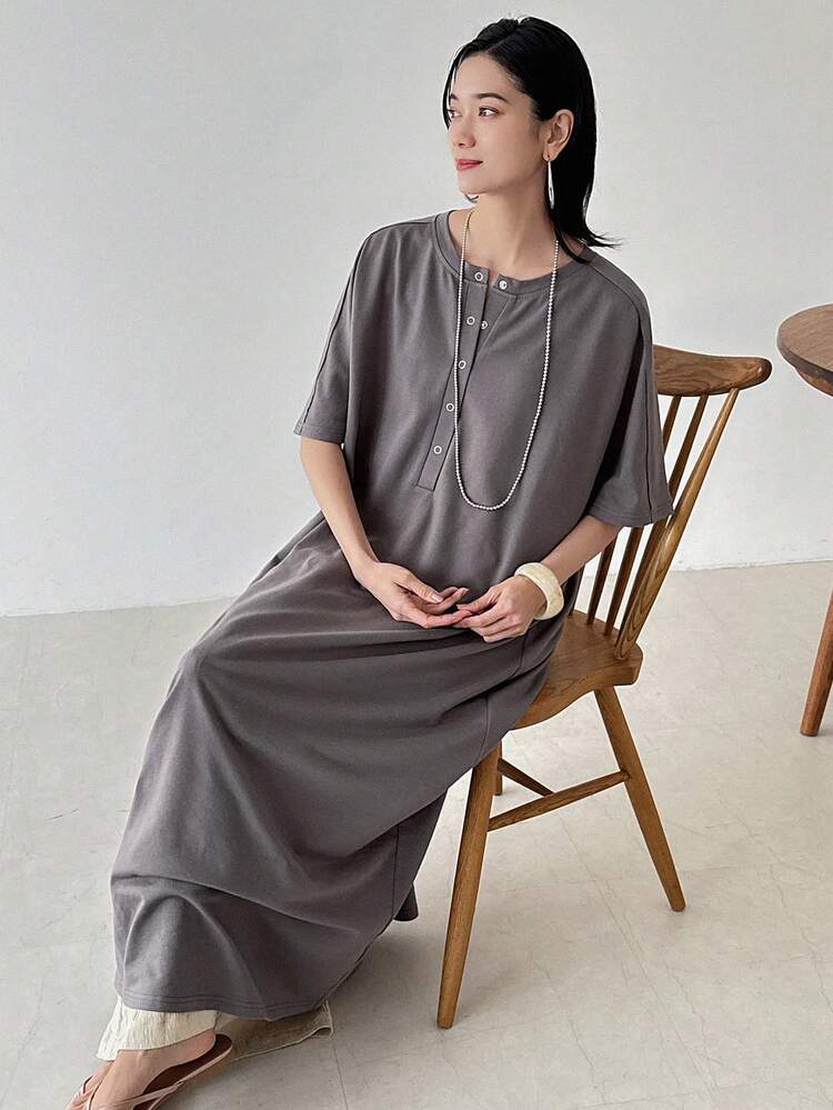 FRIFUL فستان سيدات طويل الأكمام رمادي اللون، ملابس صيفية عادية للمكتب، فستان صيفي